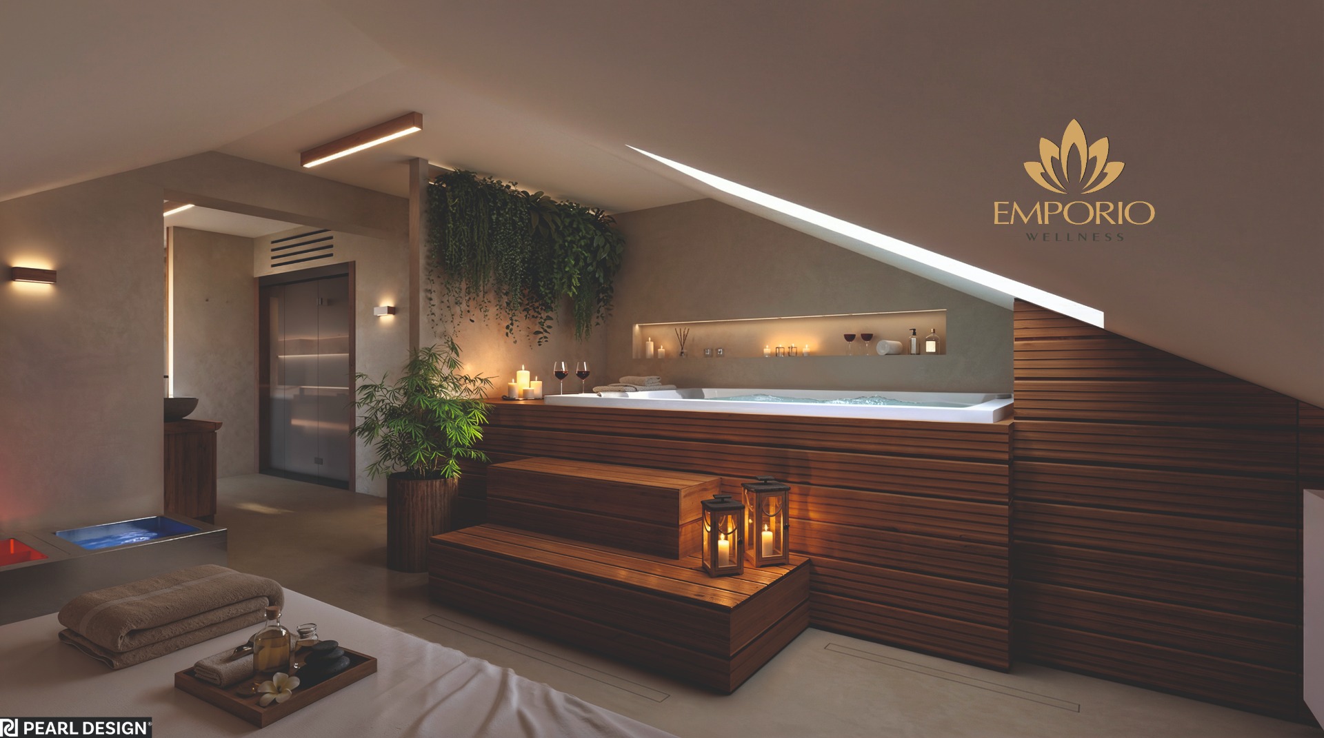 Vizualizace rekonstrukce ve spolupráci s interiérovým studiem PEARL DESIGN z Olomouce. Rekonstrukce přinese nové standardy pro privátní wellness v Olomouckém kraji.